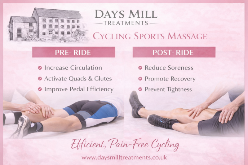 A pre-event massage for a cyclist should focus on activation, mobility, and reducing minor stiffness—not deep relaxation.